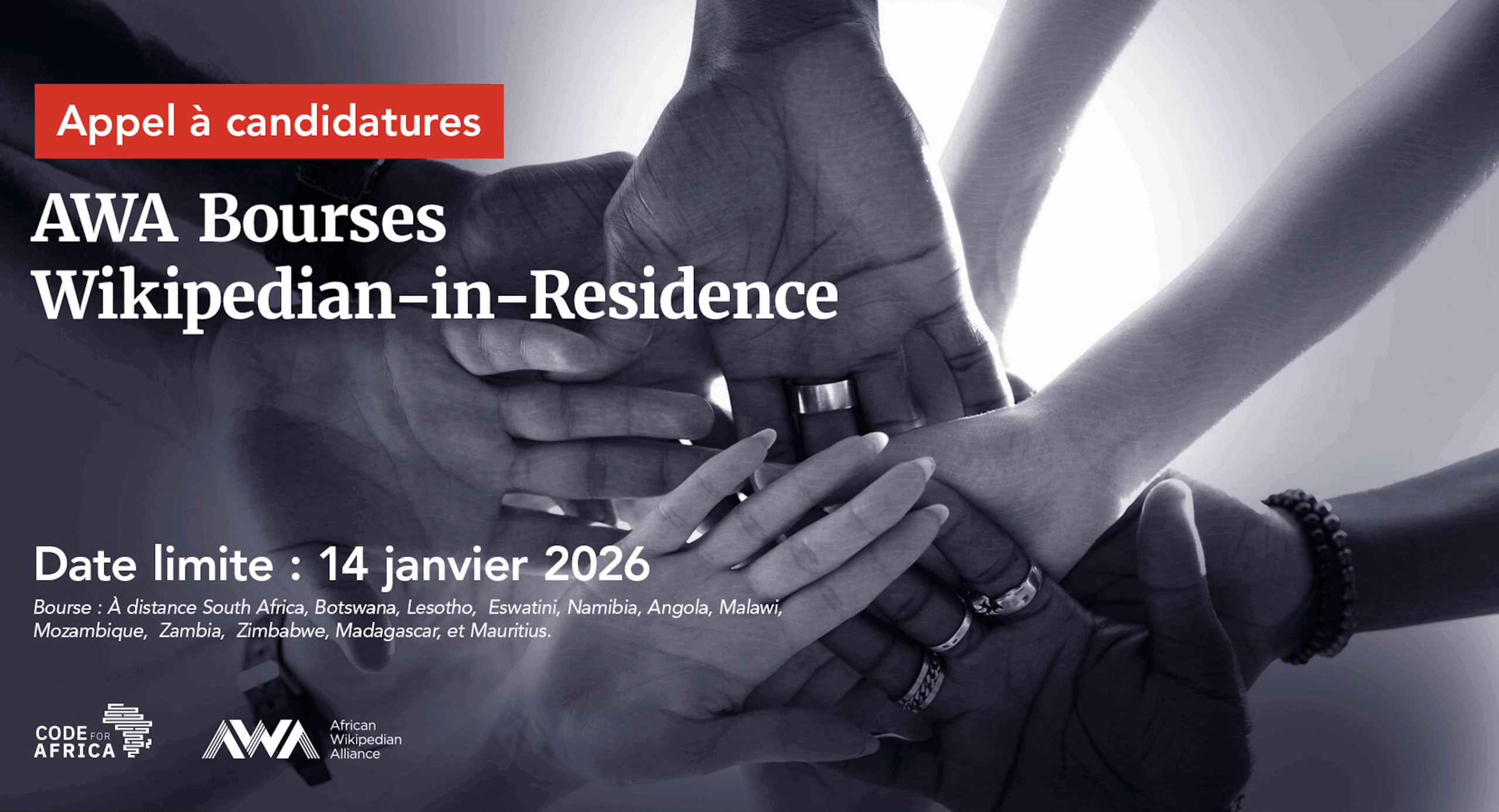 Code for Africa (CfA) offre des bourses à quatre (4) Wikipédiens africains en résidence afin de renforcer la défense de l’écosystème en s’attaquant aux disparités entre les sexes, en défendant les droits des LGBTQ+ et en comblant les lacunes en matière de contenu sur les pratiques xénophobes en Afrique du Sud, garantissant ainsi un espace numérique plus inclusif et mieux informé en Afrique australe et dans les pays voisins.